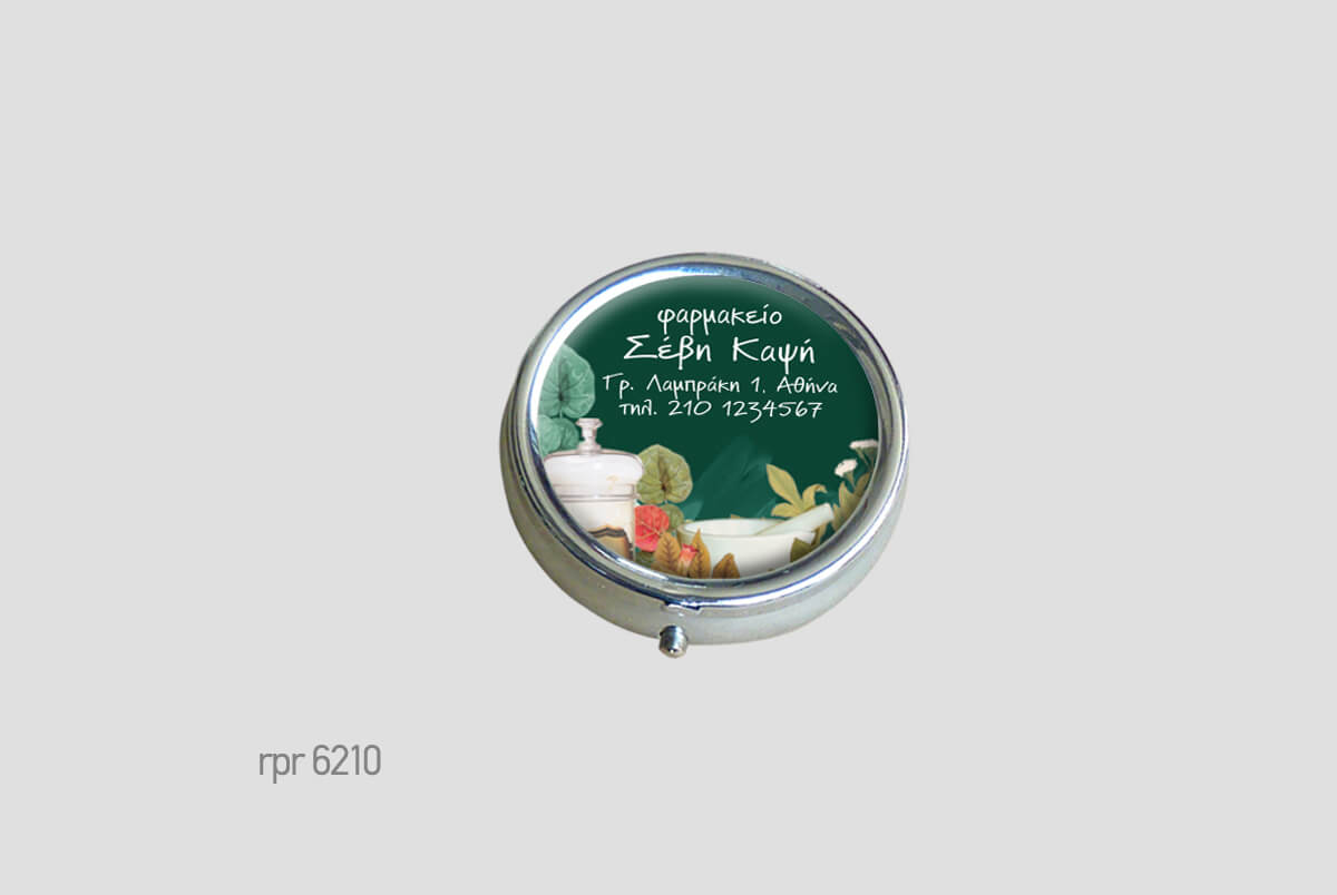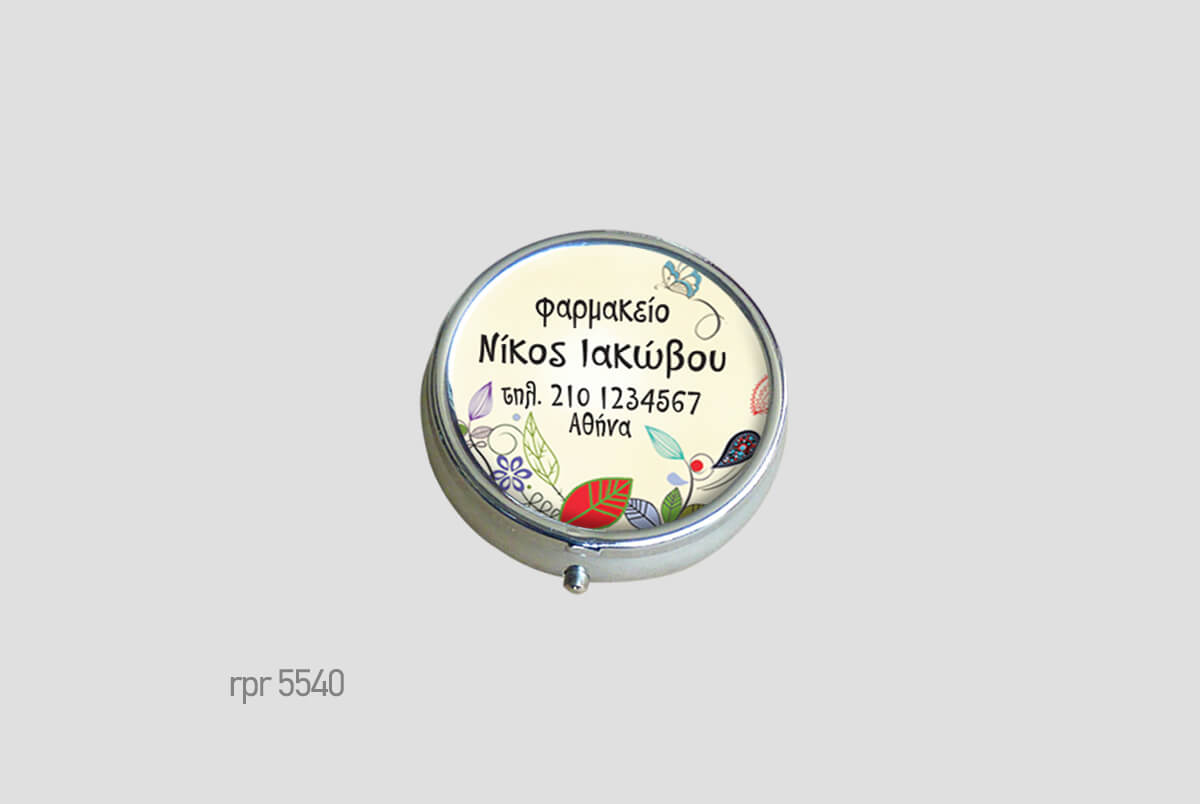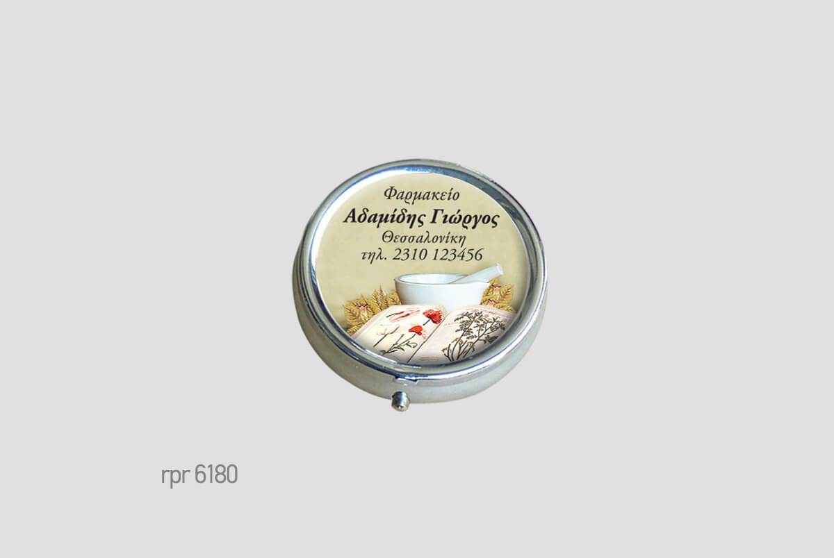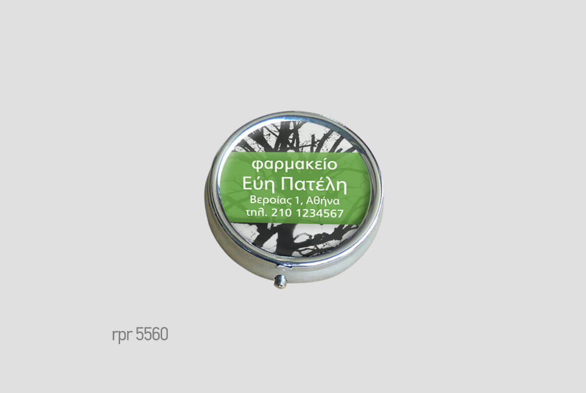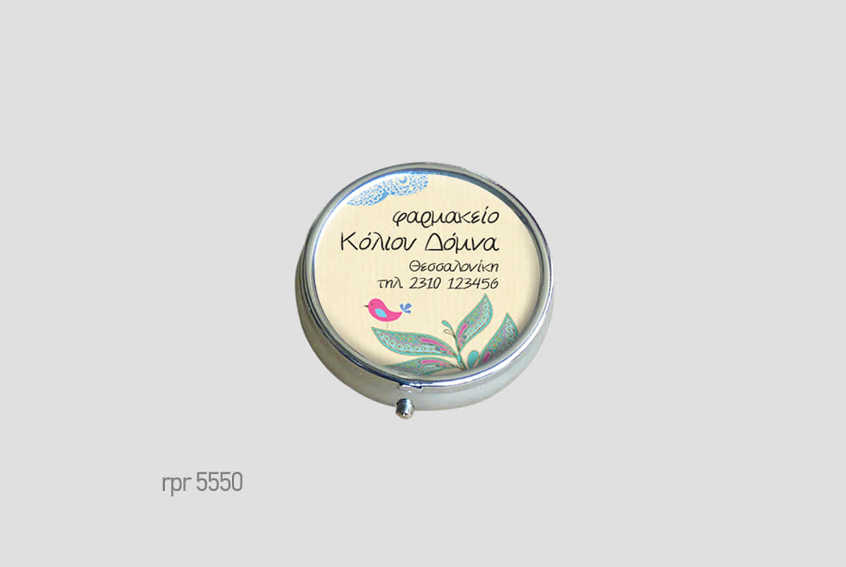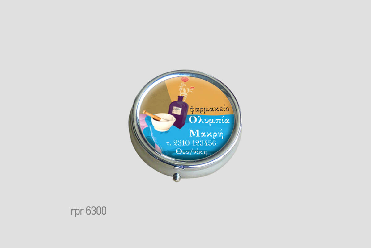 Μεταλλικό κουτάκιμε πλαστική θήκη χαπιών.Μικρό και διακριτικό,Round (στρογγυλό) τριών θέσεωνΨηφιακή εκτύπωση και επισμάλτωση.