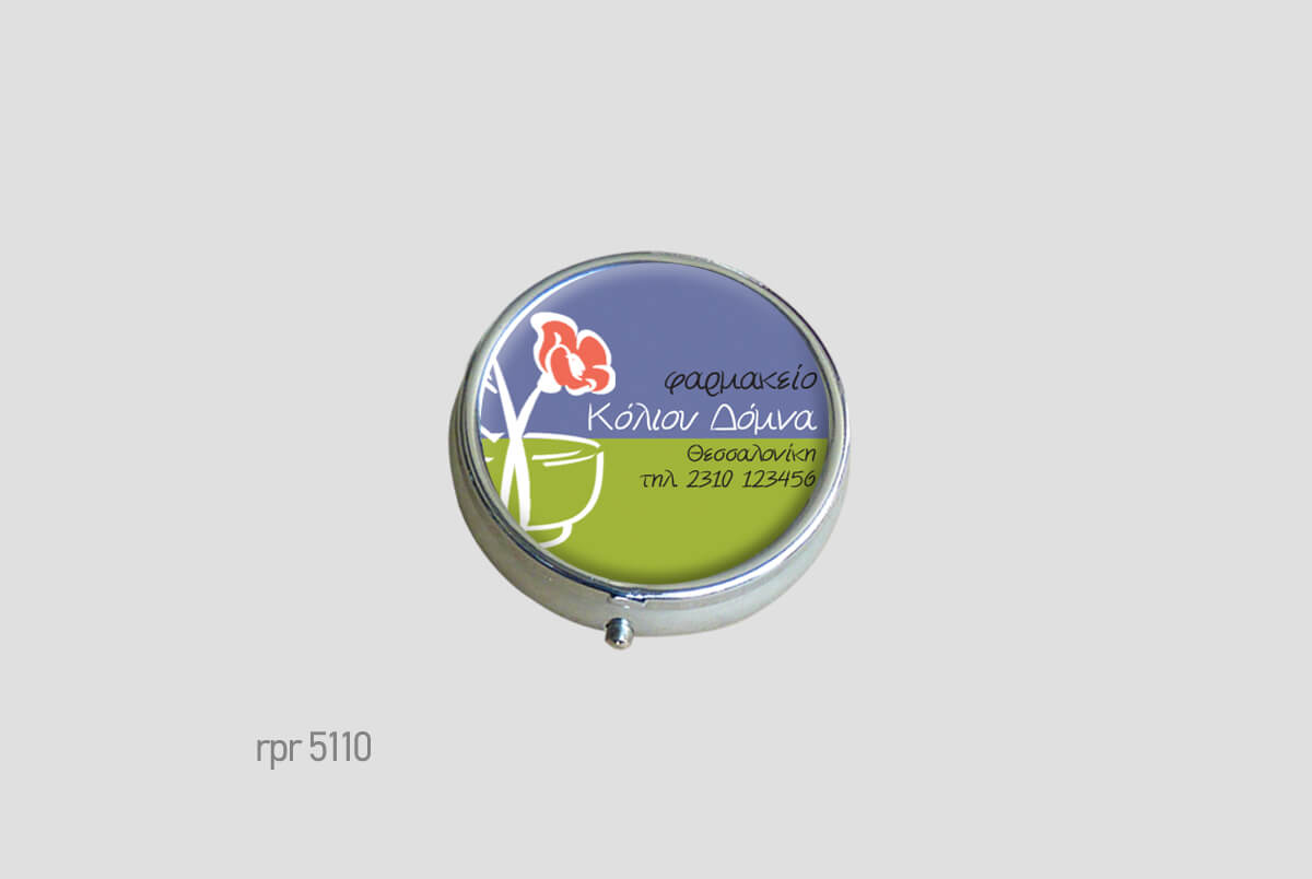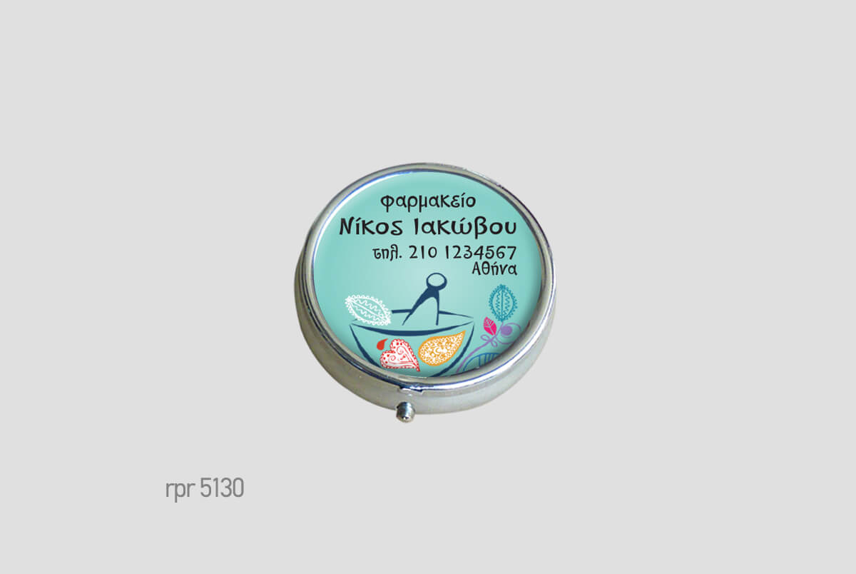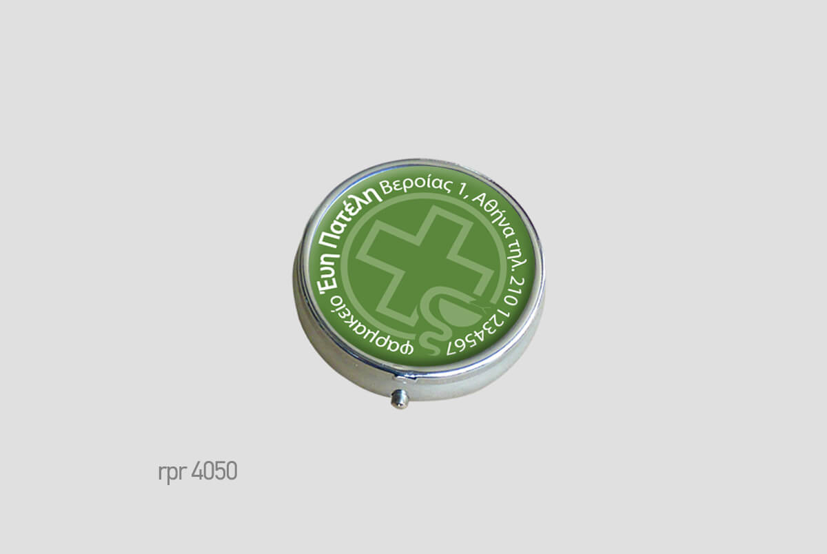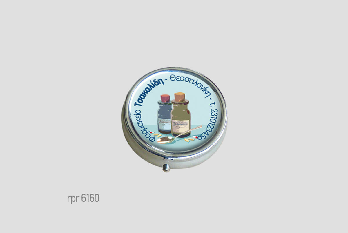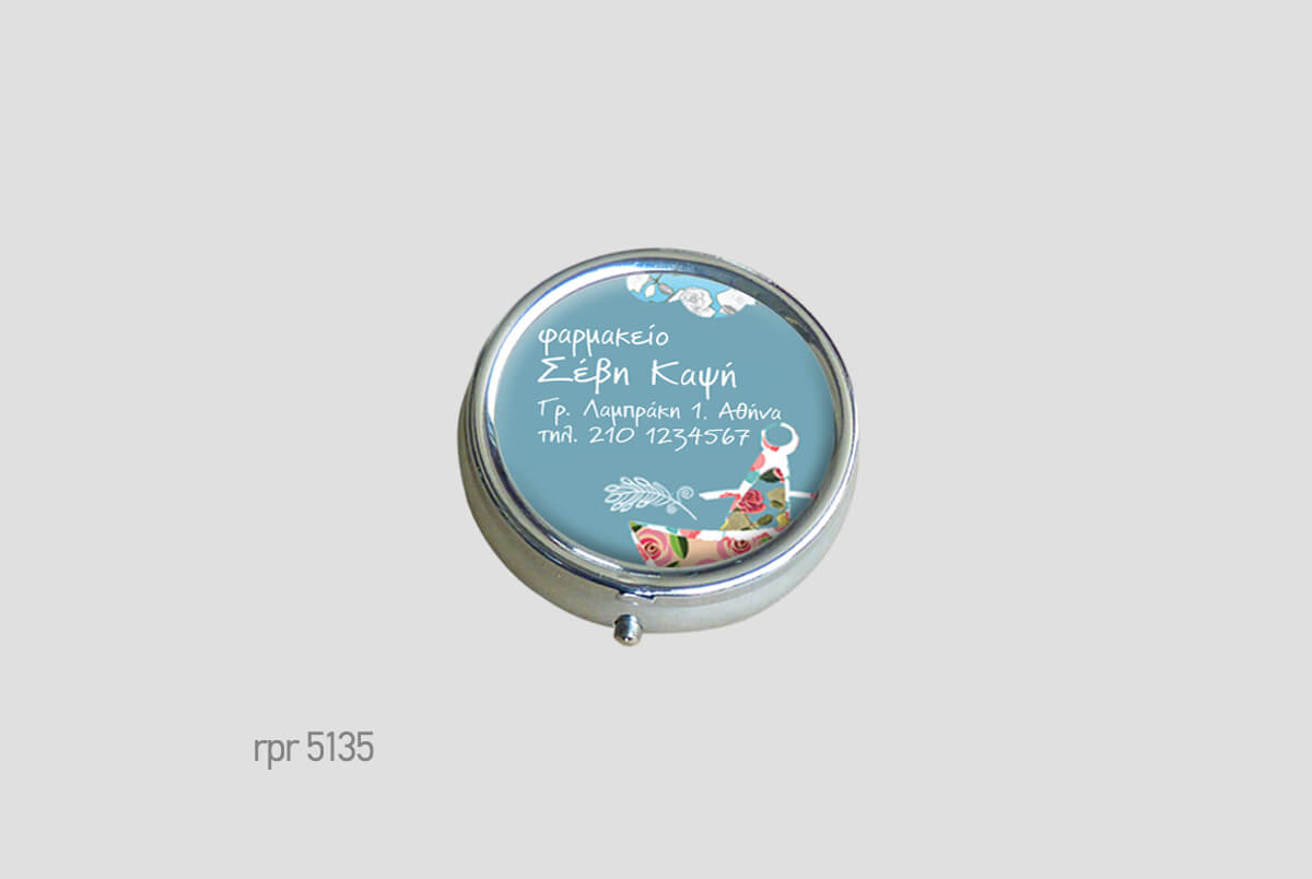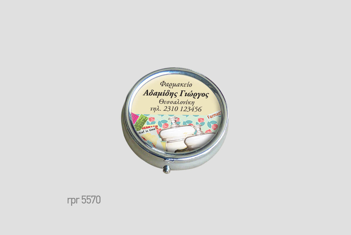 Μεταλλικό κουτάκιμε πλαστική θήκη χαπιών.Μικρό και διακριτικό,Round (στρογγυλό) τριών θέσεωνΨηφιακή εκτύπωση και επισμάλτωση.